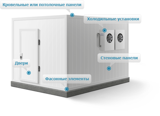 Выполняется монтаж каркаса из металла. Следующий этап – обшивка корпуса пенополиуретановыми панелями. Большое значение имеет теплоизоляция и герметичность конструкции. Для максимальной герметичности сэндвич-панели скрепляются узлами замкового типа. Для создания надежной теплоизоляции применяются пенополиуретановые панели, которые в то же время обеспечивают непроницаемость для воздуха и жидкостей. Специалисты не рекомендуют использовать в качестве теплоизоляционных материалов пенопласт и минеральную вату. Они не соответствуют необходимым требованиям прочности, подвержены накоплению влаги и конденсата.